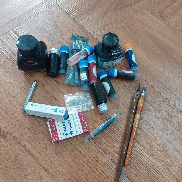 → jetalpha : 另一瓶看不出是哪個牌子的墨水,外加兩隻沾水筆吧?06/03 16:55