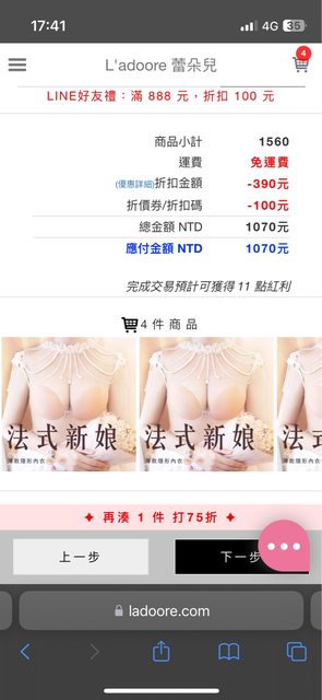 官網優惠三件75折,滿888有新戶再折100