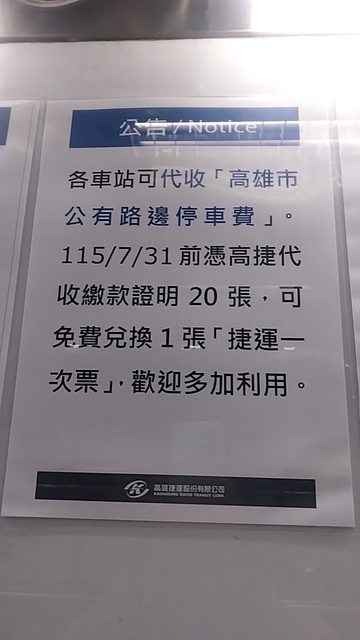 路邊停車費,去高雄的捷運站繳費,20次可以換一張高雄捷運一次票。
