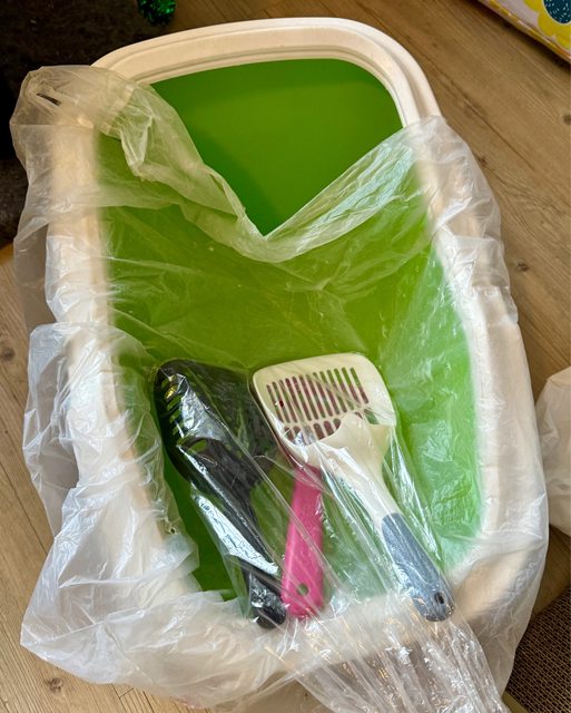 一綠一灰,附贈幾個八成新貓砂鏟。