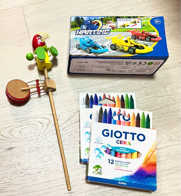 童玩、玩具車、蠟筆