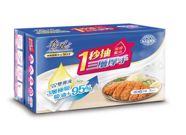 物品名稱:春風一秒抽三層厚手廚房紙巾(規格80抽 x 3包)*3串