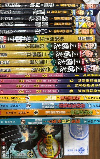 物品名稱:兒童漫畫書籍,包括三國志系列、福爾摩斯、達克比辦案系列、鬼滅之刃2本