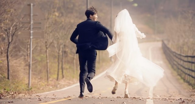 記得在第一集,一襲白紗的丹伊牽著恩浩的手奔跑在公路上,雖然恩浩不是那天的新郎,但