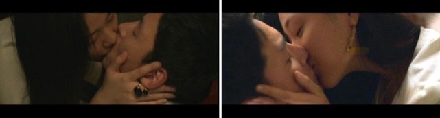 9. 俊末和海蓮兩人接吻的場景,拍攝手法故意穿越180度線(也就是男方一下子在鏡頭左
