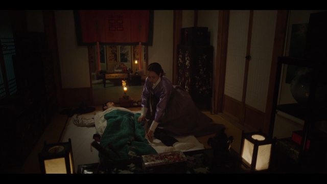 趙與花小心翼翼地推開廂房門,並試圖替朴秀浩蓋好被子。