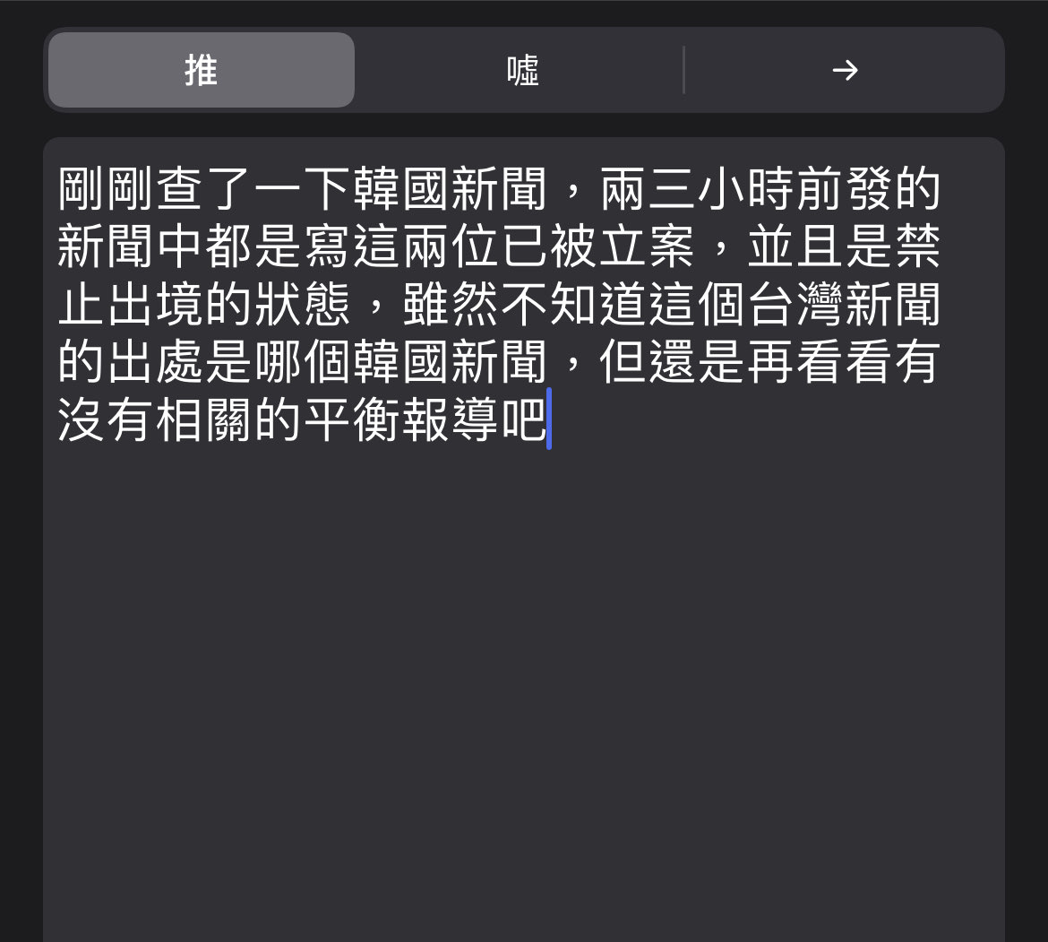 → snowflake999: 說沒有拒絕陳述,感覺韓網那邊的訊 223.140.34.41 10/29 18:24