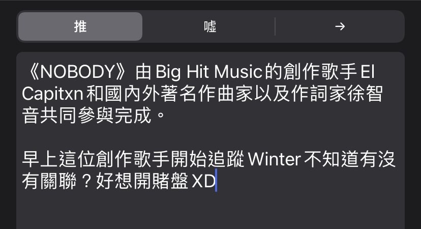 → abellea85209: aespa應該機率極高是冬天 1.161.80.219 11/06 14:15