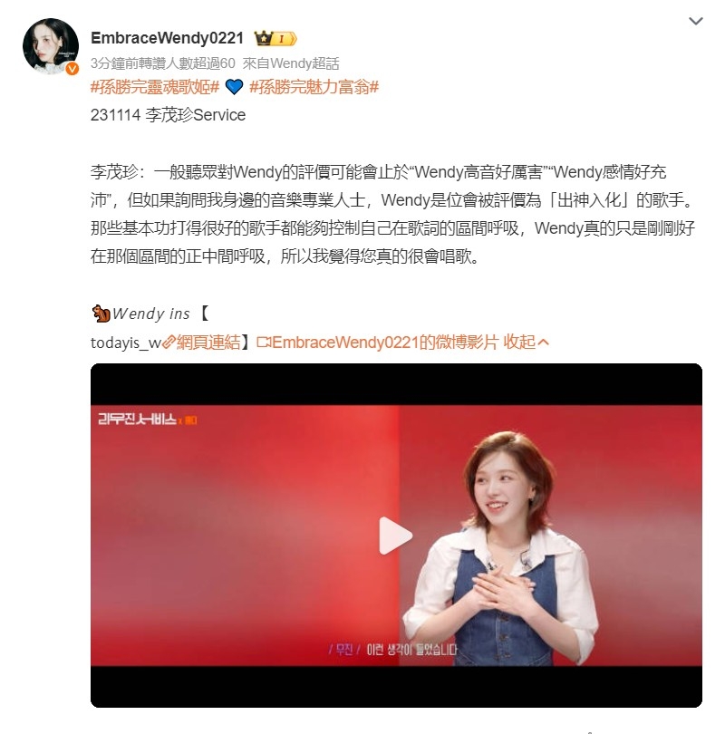 推 ahujean: Wendy 音樂劇後又變得更強了,真的是li 1.165.22.97 11/14 22:03
