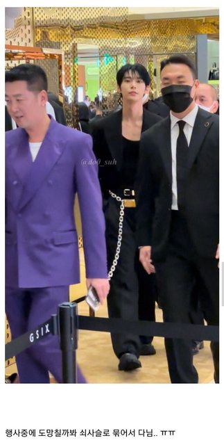 怕偶像在活動中逃跑了,所以用鐵鍊拴起來..TT