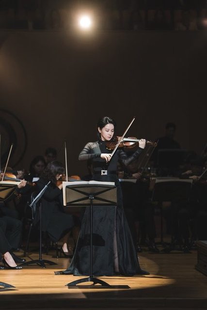 李英愛以小提琴手的身分出現在舞台上。