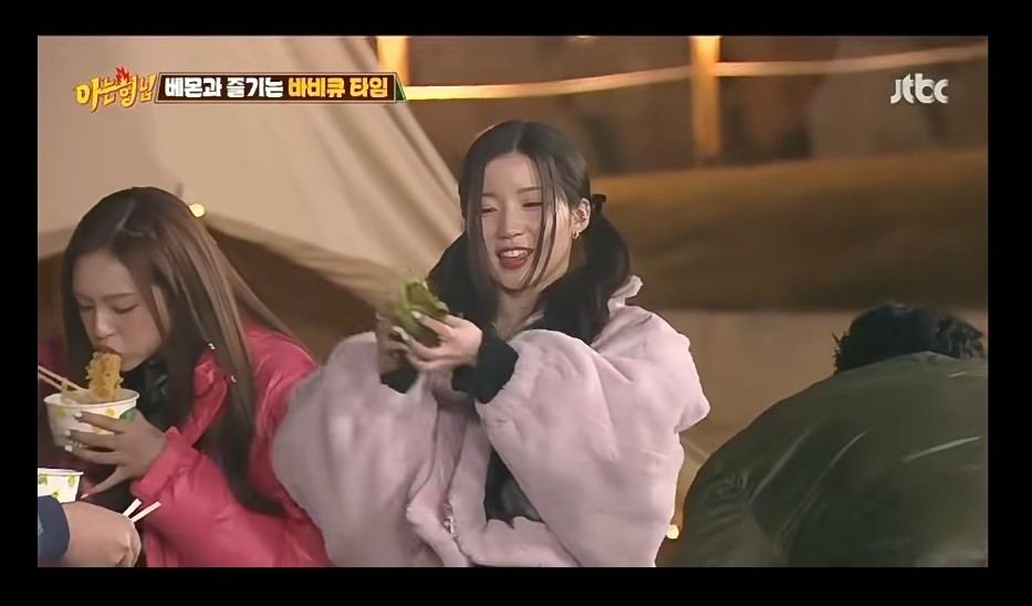 Ahyeon毫不意外地害羞起來,當Chiquita把麥克風遞給她說話時,她顯得局促不安。當她