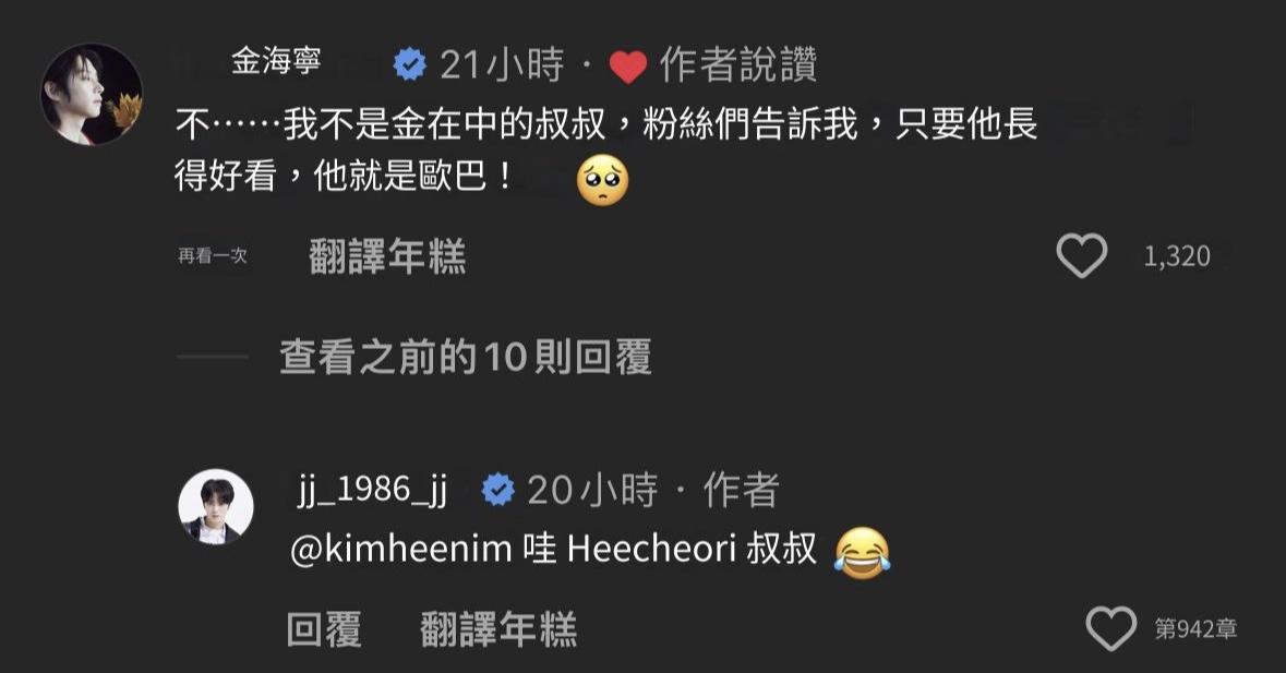 當李瑞稱金在中為「大叔」時,金在中說:「我是大叔嗎?聽到這個稱呼真的很傷心」,