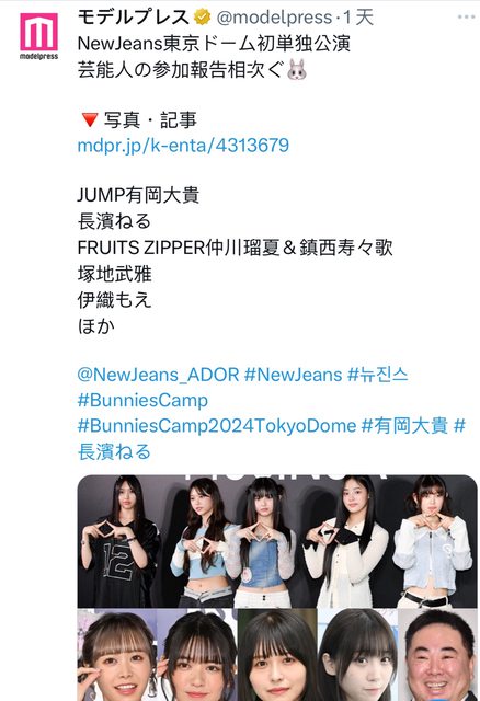 NewJeans透過這次東京巨蛋粉絲見面會創下的記錄 在東京巨蛋舉行粉絲見面會,而且3層座位+視線不良區都開放的偶像團體只有3組 (照片上至下) 2018 SHINee 2023 SEVENTEEN 2024 NewJeans NewJeans是首組創下這個紀錄的女團 來源: theqoo https://theqoo.net/square/3296621037 1. 我也超級想去的說... 下次粉絲見面會拜託辦在高尺巨蛋.. 2. 恭喜,NewJeans再飛得更高吧!! 如果有開演唱會的話我也想去 3. 太厲害了,她們才出道沒多久耶 4. 不愧是讚Jeans 5. 在韓國開演唱會吧 這次一定很有意思吧,真羨慕 6. 啊,這個不是演唱會嗎? 真厲害 7. NewJeans真帥氣 8. NewJeans最棒了~~ 在韓國也開粉絲見面會吧 我想去! 9. 孩子們真的是巨星啊... 10. 企劃力太瘋狂了,韓國國內沒有具備這種企劃力的製作人 11. 拜託一定要開演唱會,NewJeans我愛你們 12. 才出道兩年就這樣.... 好驚人 13. 哇,我到目前為止都以為是演唱會呢,真了不起 14. 雖然是粉絲見面會,但是構成安排得非常用心,還以為是演唱會呢 15. 好帥啊,等出正規專輯後應該會在韓國開演唱會,會不會從體操開始辦呢? 轉載自韓網評論翻譯站 https://www.facebook.com/share/p/7cwTKN9fiV71kkib/?mibextid=WC7FNe - 前來觀賞的日本藝人 https://i.imgur.com/uFLnB3n.jpeg
