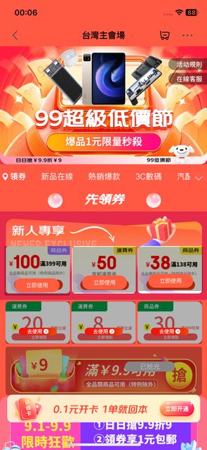 有搶到券的恭喜,沒搶到的9/9前每天零時都能搶,不少人搶到分享截圖囉