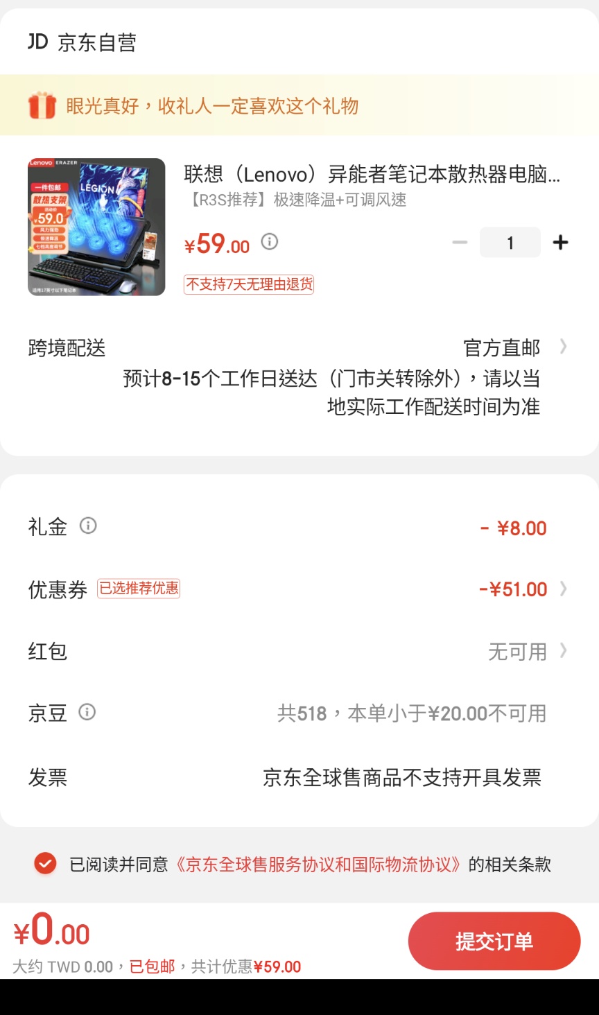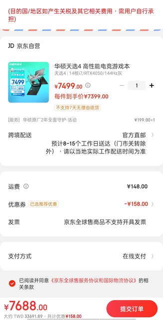 除非你定期會去大陸,否則要加價保固的全都不要,京東買天選4本身就有國際保