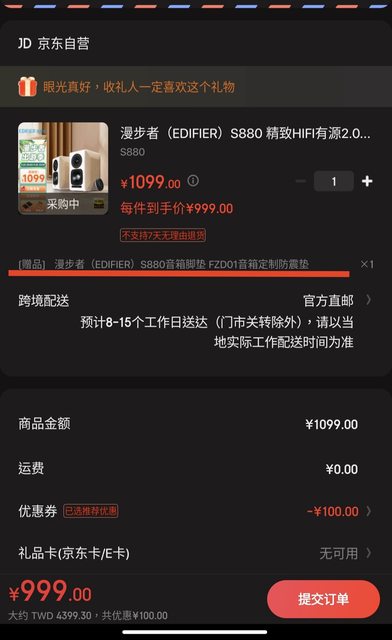 推 HansLin: 曬單送藍芽不能直送台灣,要填寫大陸地址,210.64.100.200 09/23 21:31