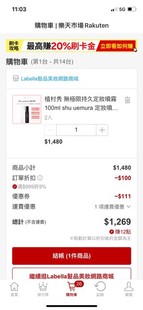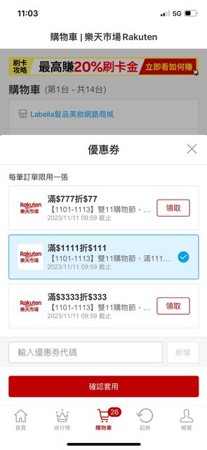 然後可以領券再折$111,