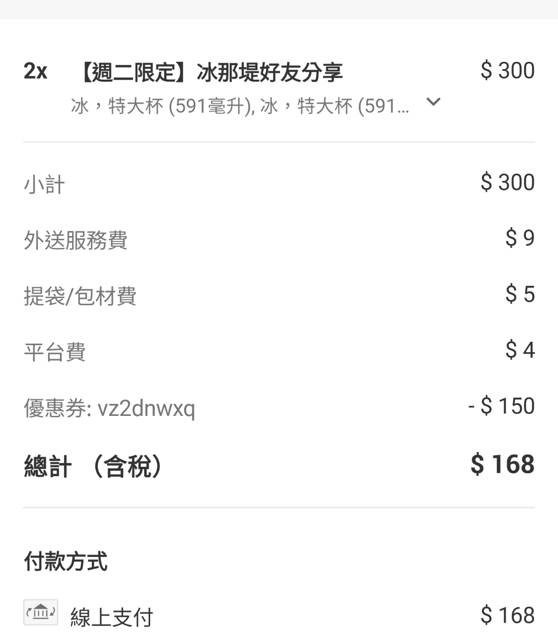 推 braintu: 特大冰拿*2+可麗露*1 = $128 114.137.151.19 11/14 13:47