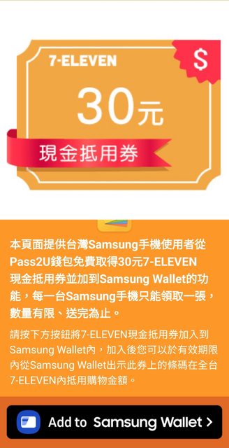 標題Re: [情報] 三星wallet app領711 30元抵用券(沒了