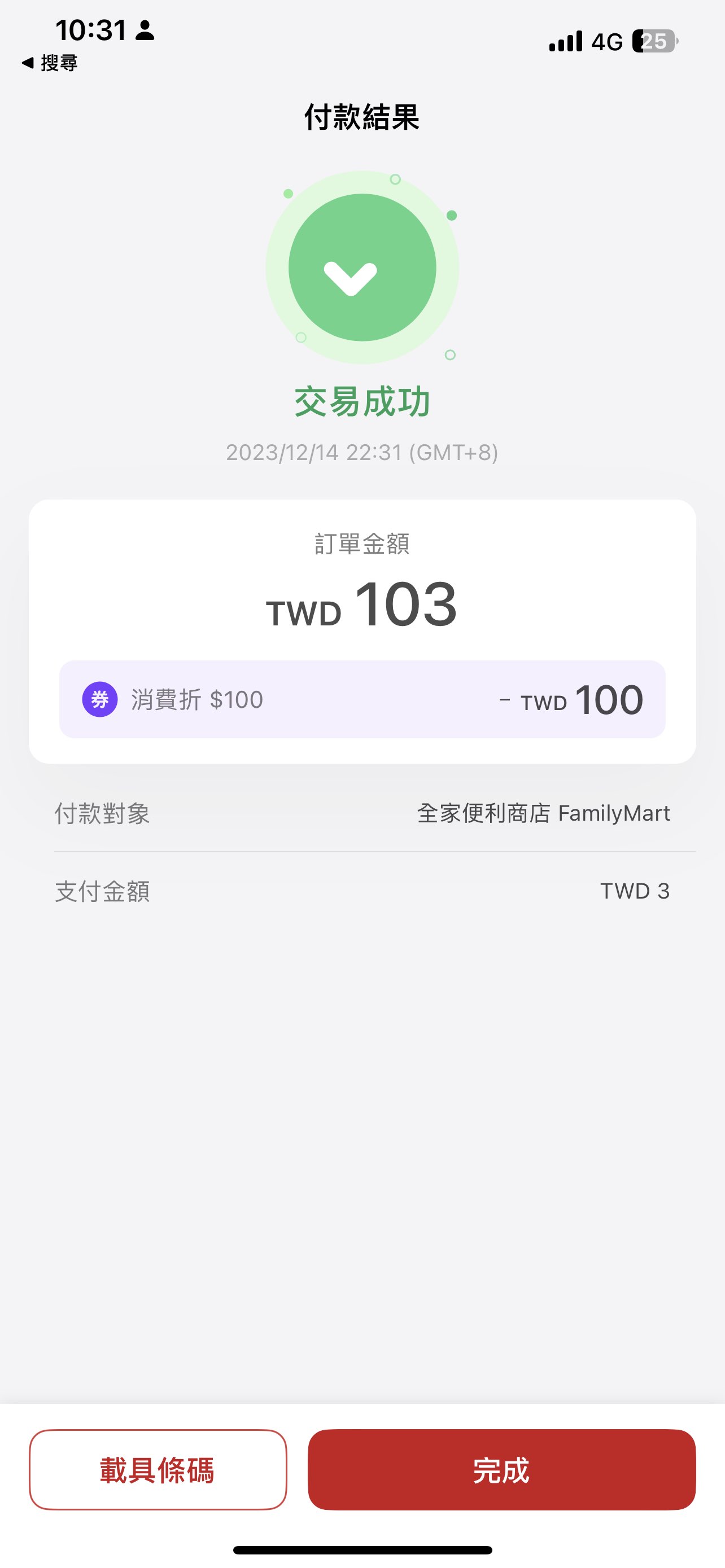 e882959: 有券的話掃碼結帳會自動帶入要折扣的金額 114.34.127.231 12/14 22:47