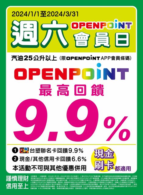 標題[情報] 台塑週六 OPEN POINT會員日活動(延長至