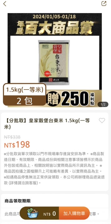 推 luoyew: 推分批取皇家穀堡台東米可以先買起來放, 1.169.223.166 01/05 21:04