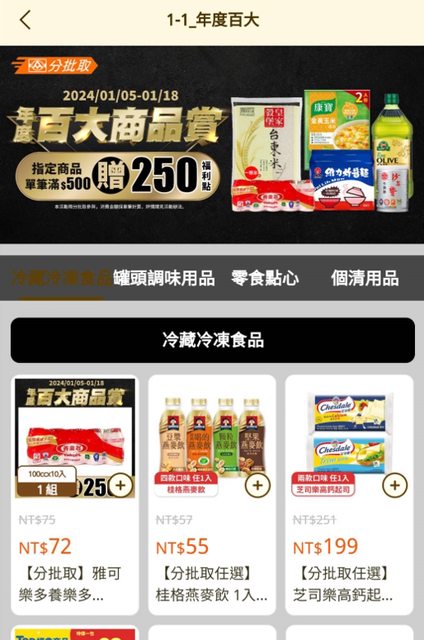 百大商品購買任兩件贈送全聯福利點300點(每人上限300點)