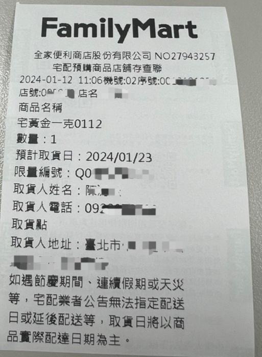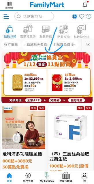 時間:1/12限定(早上11點) 全家點數免費兌換方式 黃金一克(市價3200):66萬點 或 1點+2999元 黃金一台兩(市價8萬5):888萬點 或1點+83999元 全家又有可以換黃金了,上次我已經見識過版上神人(點數夭壽多…@@ 我這微薄的點數,只能先用三張小朋友搶看看惹 黃金搶到的話… 過年順勢孝敬老媽剛好(? -- ※ 發信站: 批踢踢實業坊(pttbestweb.org.tw), 來自: 175.181.177.63 (臺灣) ※ 文章網址: https://pttbestweb.org.tw/Lifeismoney/M.1704964058.A.30D