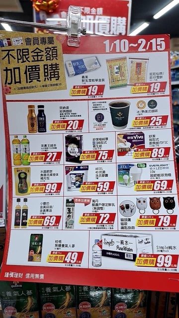 昨天下班跑去逛家樂福補衛生紙跟一些食物,發現家樂福加價購又來了! 細看才發現家樂福加價購都有全台限量 https://i.imgur.com/oHAg9MG.jpeg