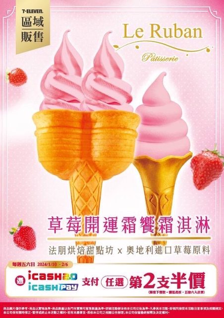 icashpay/icash2.0霜淇淋五六日享第二支半價 活動期間: 每週五六日 2024/1/12-1/14、1/19-1/21、1/26-28、2/2-2/4 活動方式: 憑icashpay/icash2.0支付7-ELEVEN霜淇淋任選第2支半價優惠 (限當下領取) 這次跟台北法朋聯名 另外icashpay新戶首筆消費還有贈50點到1/31 -- ※ 發信站: 批踢踢實業坊(pttbestweb.org.tw), 來自: 49.216.26.6 (臺灣) ※ 文章網址: https://pttbestweb.org.tw/Lifeismoney/M.1705056181.A.1D0