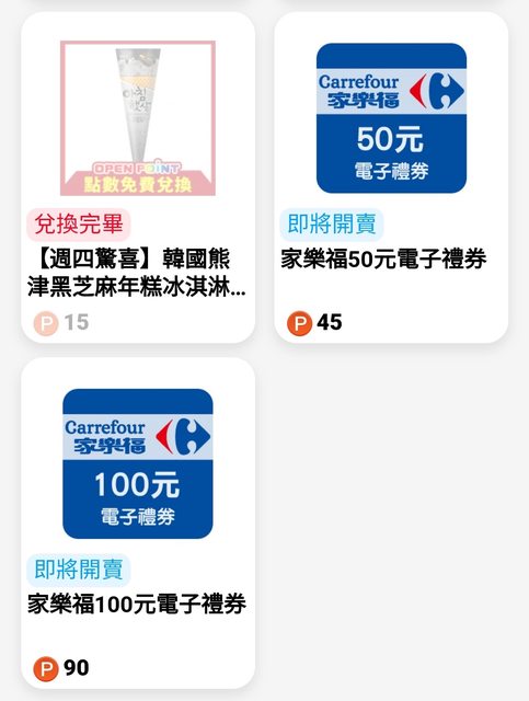 活動時間:2024/01/15 - 2024/02/08 45 op 兌換 家樂福50元電子禮券 90 op 兌換 家樂福100元電子禮券 在想,這等於是打9折的意思,會很多人換嗎?各限量5000組 https://i.imgur.com/zG8jlNr.jpg