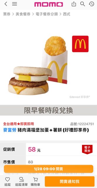 1/28 09:00開賣,有需求的可以設鬧鐘購買(雖然是常態,但好像2~3個禮拜才有一次) https://i.imgur.com/h7JgmZx.jpg