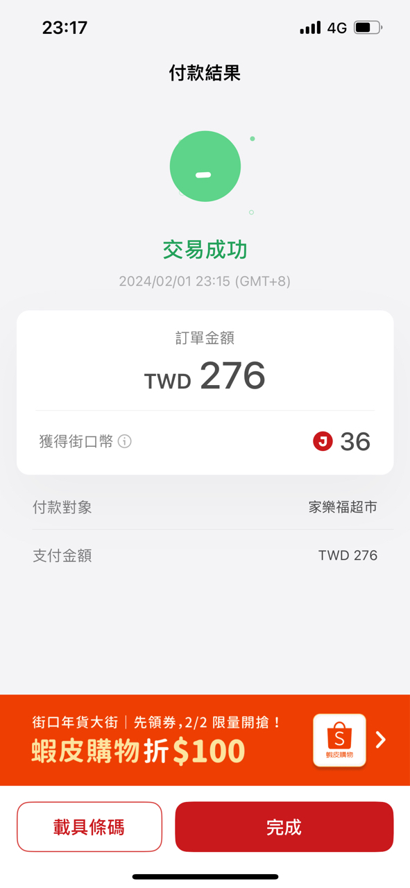 推 rose2672: 9:08還有 在pc買了400的家樂福券直接 1.200.20.193 02/01 09:11