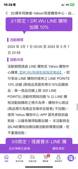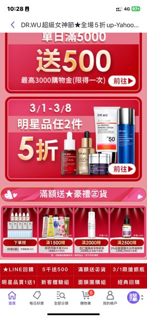 標題[情報] Y購物 Dr wu滿1500送歐舒丹 LP 10%