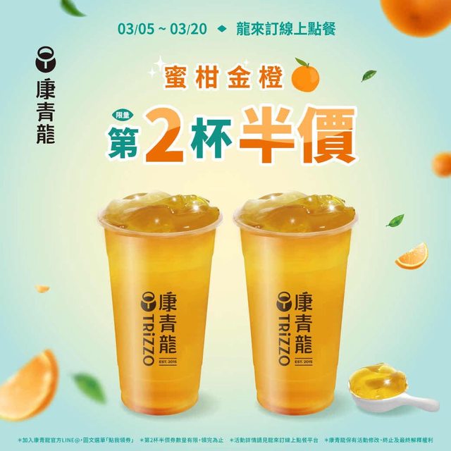 杯0元」的限定優惠,等同於買1送1。康青龍推出季節限定新品「蜜柑金橙」,更享有該