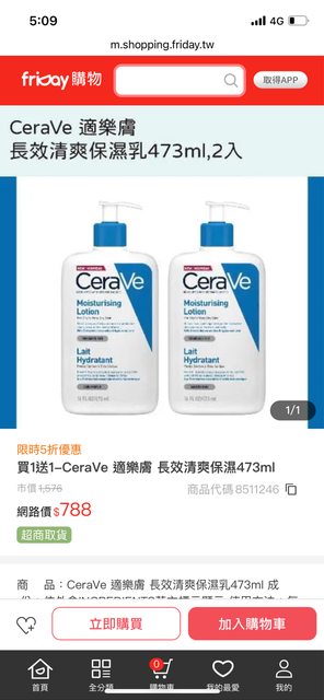 Friday購物 CeraVe 長效清爽保濕乳 473ml 2瓶 788 截圖如下 https://i.imgur.com/pwFI2Gi.jpg