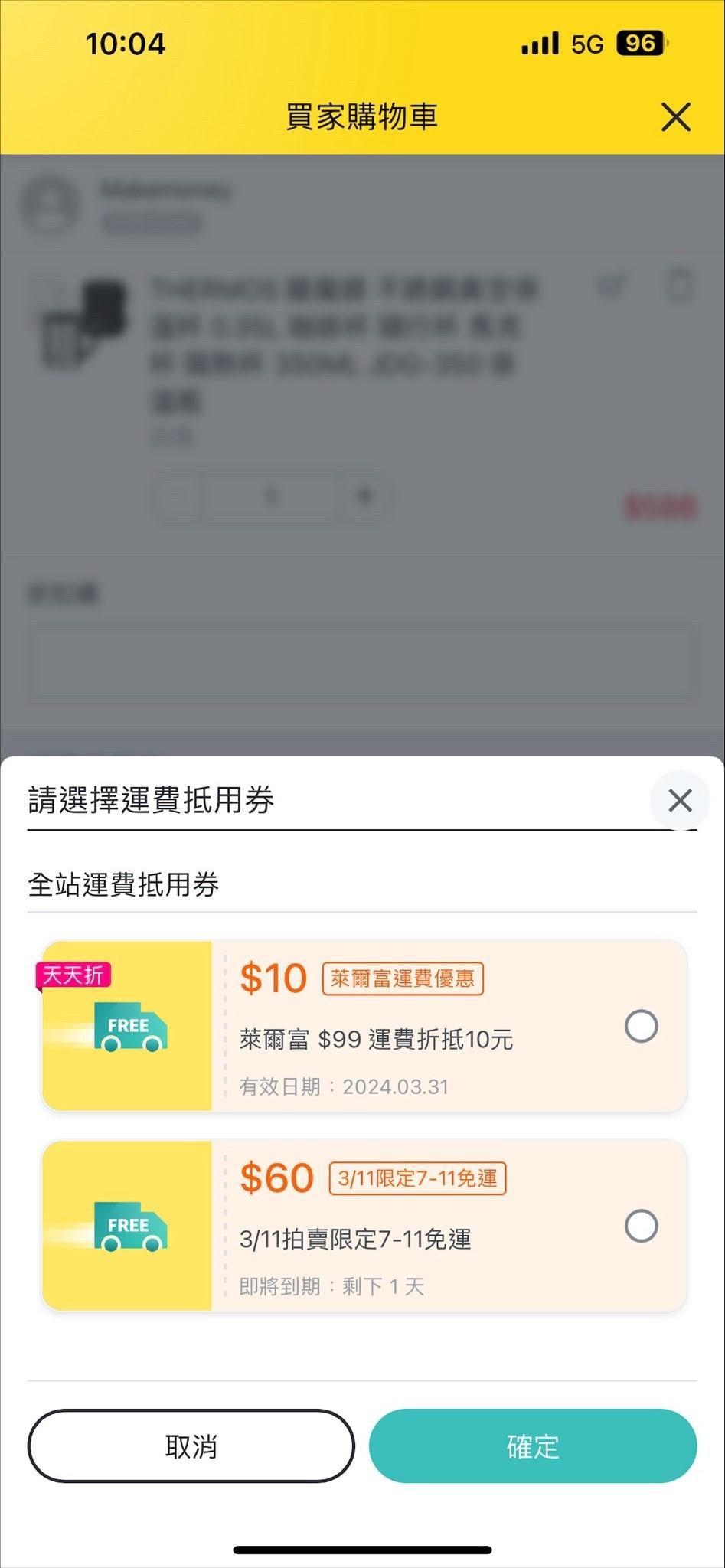 mycity50123: 早上結帳有成功拿到免運 61.65.224.119 03/11 15:52