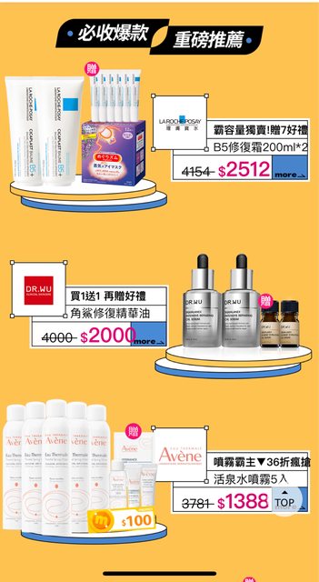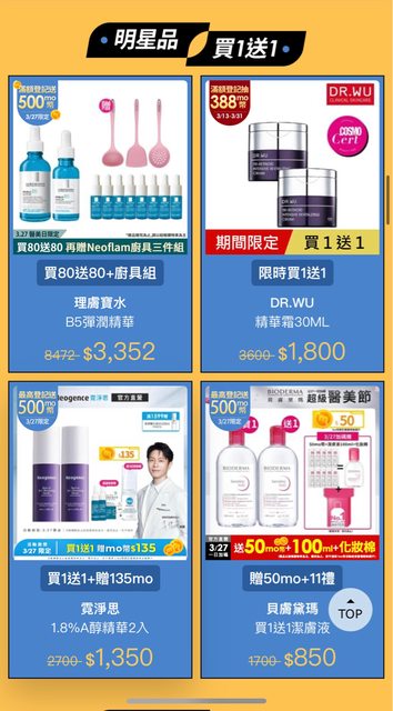 逛momo領折價券有收到寶拉珍選8折 理膚寶水75折 小藍瓶買80送80 Dr.Wu、貝膚黛瑪、雅漾也有買一送一 再去領登記500mo幣還有一堆小樣贈品 很划算 https://i.imgur.com/RwV984y.jpg