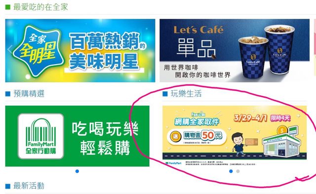 剛在官網看到的 全家取件有送購物金50元欸~:D 限量四天而已,還好我已經習慣取件都選全家了 前陣子318蝦皮有買一些,這幾天來去領一下 -- ※ 發信站: 批踢踢實業坊(pttbestweb.org.tw), 來自: 219.85.86.28 (臺灣) ※ 文章網址: https://pttbestweb.org.tw/Lifeismoney/M.1711622060.A.9EB