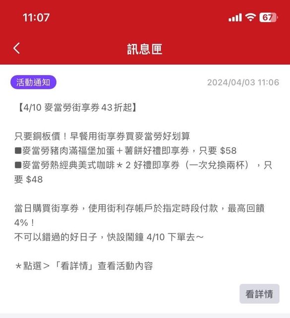如題,有收到街口app通知 不知道是不是限定當天使用 https://i.imgur.com/1LbjPgI.jpg