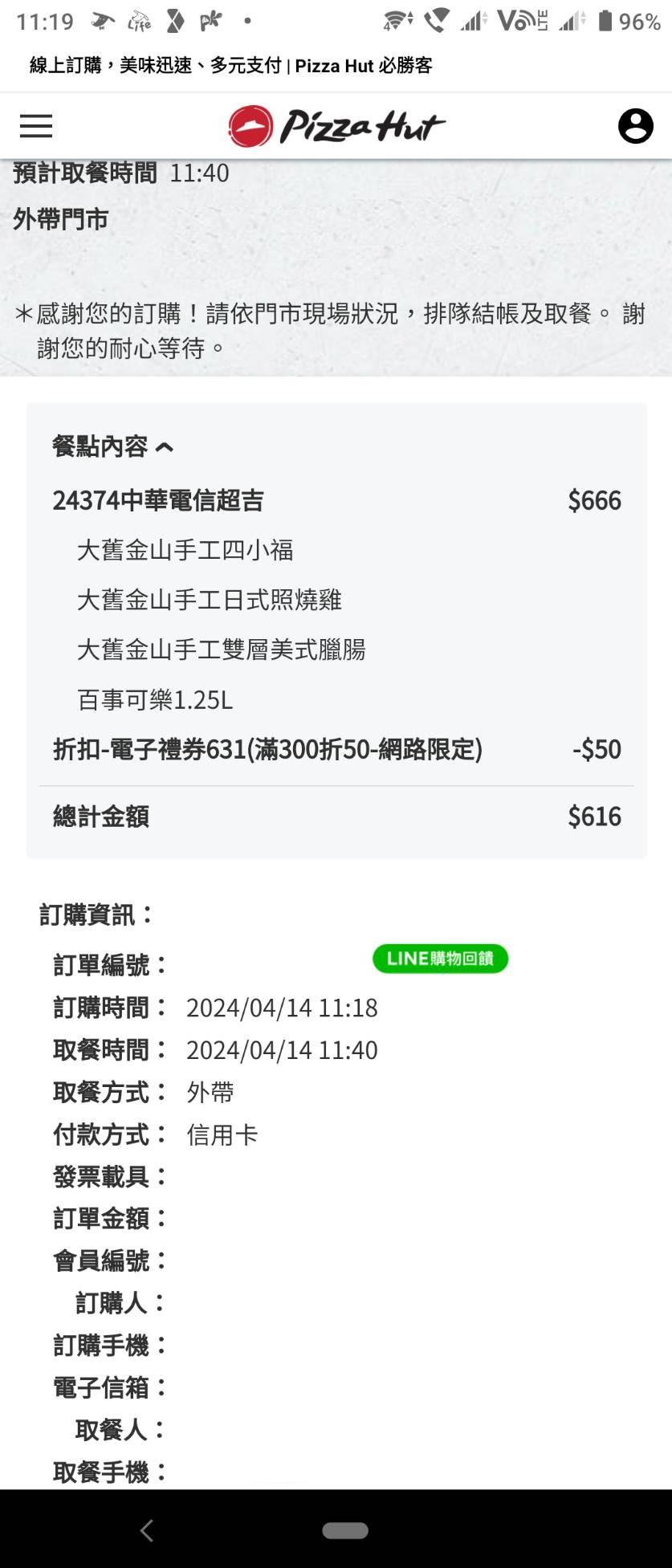 使用優惠代碼:13815聯邦銀行派對 大pzza*3+可樂1.25L=666 666-折50-line導購5%-apple pay7% 還有PKapp點數回饋 (apple pay 綁 sport 卡) https://i.imgur.com/ne9SKCp.jpg