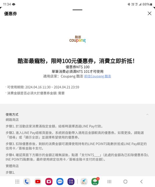 → papau: 抵酷澎幣,再選Line pay付款,可再用優惠券180.217.199.230 04/18 10:21