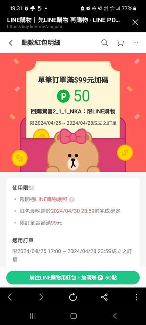 → yut698: 收到199-50,先pass,下次等看看 180.217.133.17 04/25 20:28