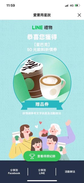 fnwang: 我也有抽到50元星巴克飲料券. 111.82.185.195 04/27 14:57
