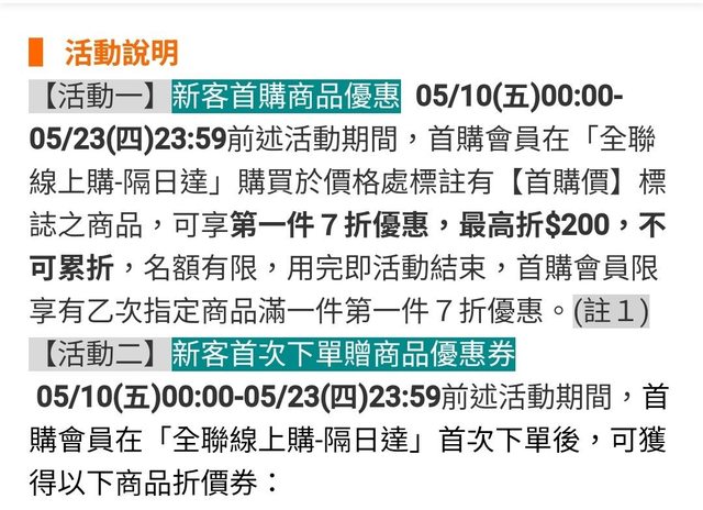 標題[情報] ~5/23全聯線上購 首購價7折 最高折$200