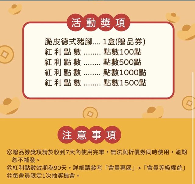 獎項有豬腳、紅利變數100-1500點不等 https://i.imgur.com/eJ9T16B.jpeg