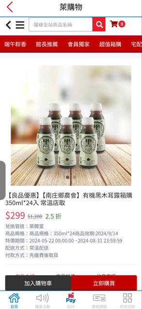 即期良品 到2024/09/14 箱購24瓶 299元 其他平台看到最便宜一瓶也要25元 https://i.imgur.com/kc14a6z.jpeg