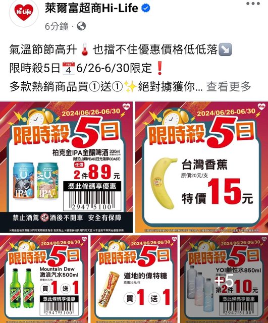 萊爾富激浪偉特糖辛拉麵買一送一