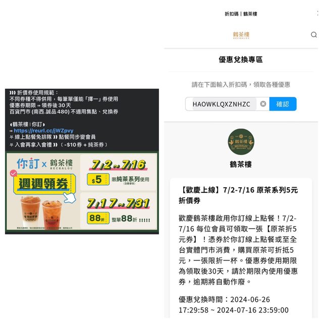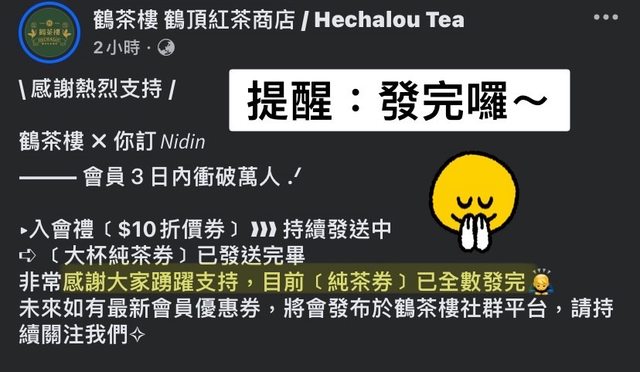 鶴茶樓 你訂 合作 即日起入會禮贈一杯原茶 https://i.imgur.com/o94MuhU.jpeg